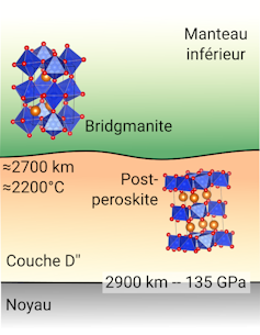 Il devenait donc tentant d’associer directement les discontinuités sismiques observées dans la couche D" à des limites entre des régions dominées par le minéral bridgmanite et sa forme de plus haute pression, la post-pérovskite.
