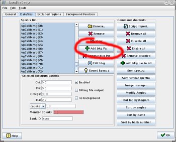 | Adding individual background paramaters | Setting background refinement in the parameter list window |