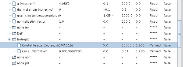- refine peak profile and sample properties (crystallite size and microstrains) together.