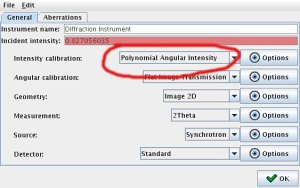 In order to activate this mode, open up your instrument parameters tab, and select Polynomial Angular Intensity for the intensity calibration (Figure 1). Open up the option dialog and add 5 or 6 polynomial parameters (Figure 2).