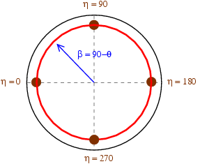 If you perform an axial diffraction experiment, your incoming x-ray beam is parallel to the compression direction. In the figure below, we show the location of the data measured at eta=0 and eta=90 on the pole figure of the compression direction. Eta is the azimuth angle on the image plate. I personaly call it delta in my publications, but MAUD calls it eta...