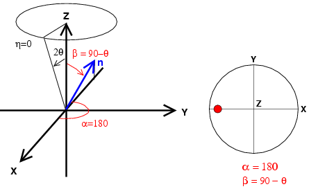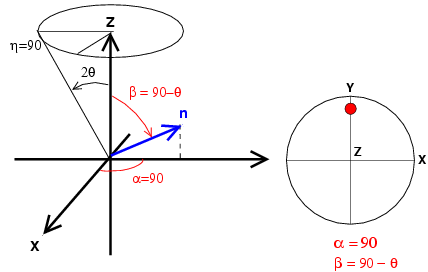 ![]() | Figure 2: diffraction in axial geometry with the azimuthal angle on the image plate equals to 90. n is the normal to the diffraction plane and we report the orientation of n on the pole figure. |