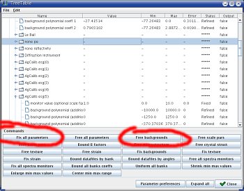 | Adding individual background paramaters | Setting background refinement in the parameter list window |