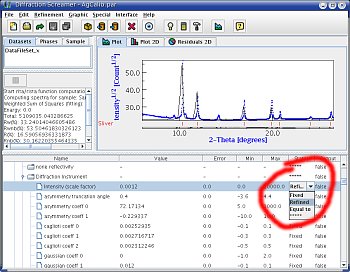 In the main Maud window, the parameters to refine are located in the main window, below the plots. You can force the refinement of a parameter by clicking on Fixed, it should bring up a menu to set it to Refined...